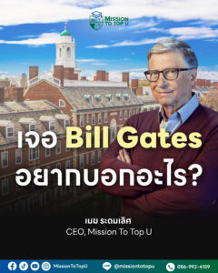 เจอ Bill Gates อยากบอกอะไร? น้องๆ ลองจินตนาการตามพี่เมฆนะครับ ถ้าน้องมีโอกาสยืนอยู่ในลิฟต์กับ Bill Gates หนึ่งในคนที่สร้างความเปลี่ยนแปลงให้โลกมากที่สุดในยุคนี้ เขาหันมายิ้มให้น้อง ทักทาย แนะนำตัว พร้อมถามสั้นๆ ว่า “Please tell me a bit about yourself.” ซึ่งอีก 10 วินาทีลิฟต์จะถึงที่หมาย